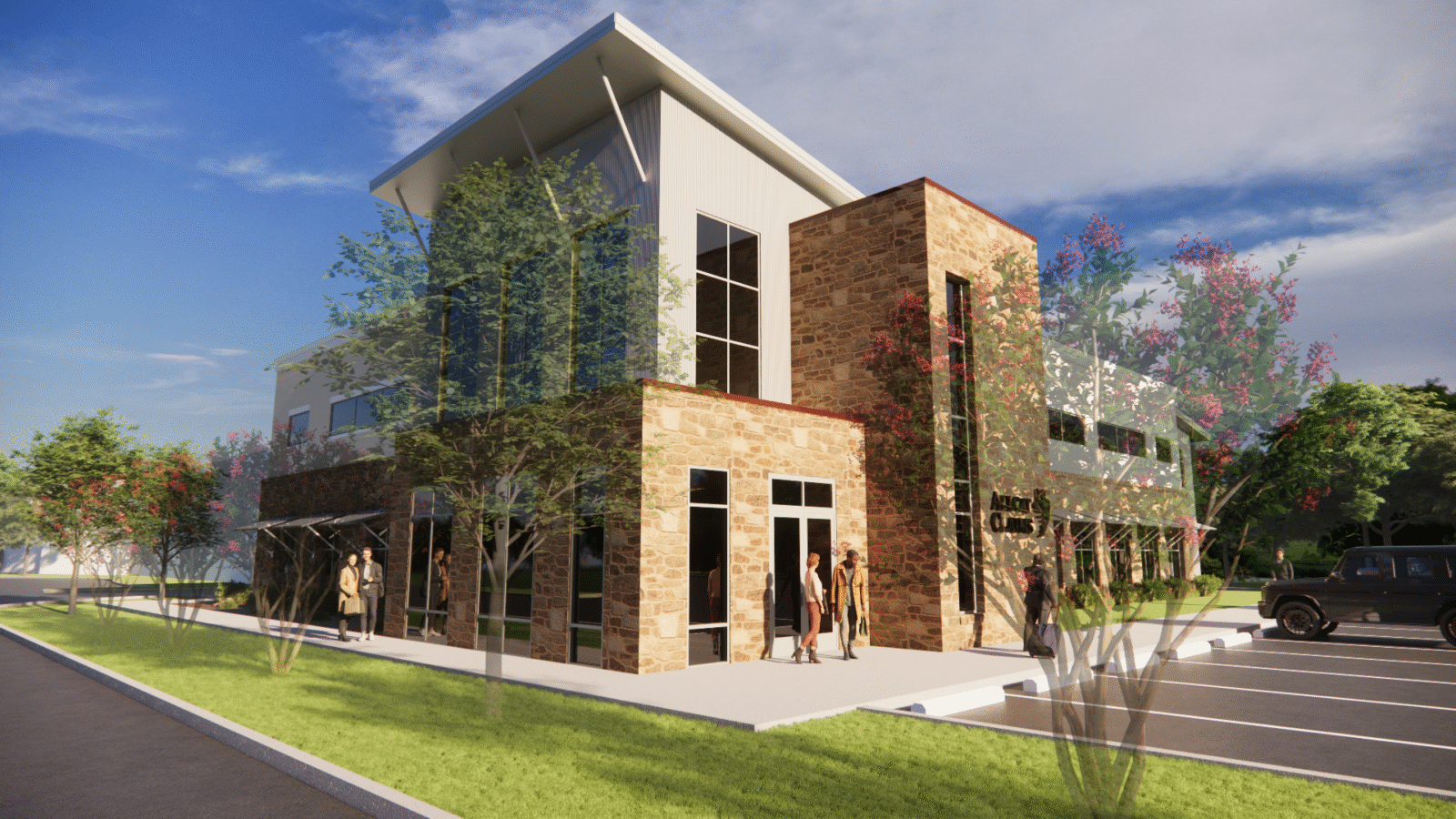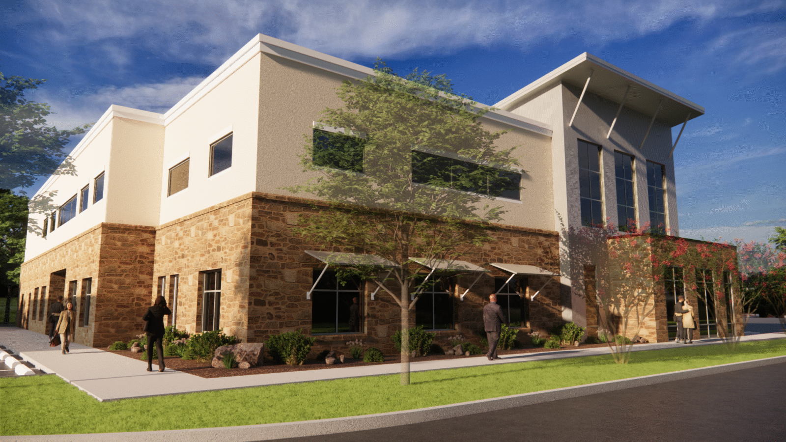 The resulting concept features a distinctive three-story design that blends modern architectural forms with natural materials sourced from the region, creating a strong sense of place and connection to the community. The ground floor conference center includes multiple secure rooms and redundant backup systems, enabling continuous operations in the event of a local emergency. This forward-looking plan positions Allcat for long-term success while reflecting their brand’s innovation and resilience.