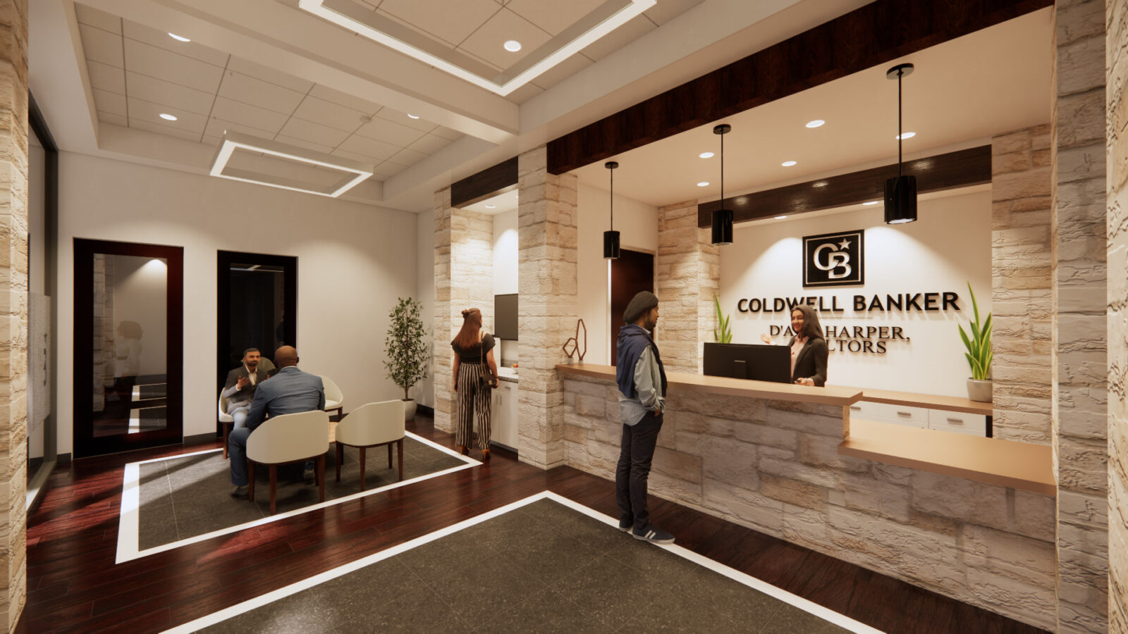 Acuform was contracted by long-standing client Coldwell Banker D’Ann Harper, REALTORS© to design a new, multi-tenant office building that reflects the company’s refreshed brand identity and responds to the rapidly changing real estate market. The project aimed to support a more progressive, tech-savvy client base while honoring the company’s established reputation in the region.